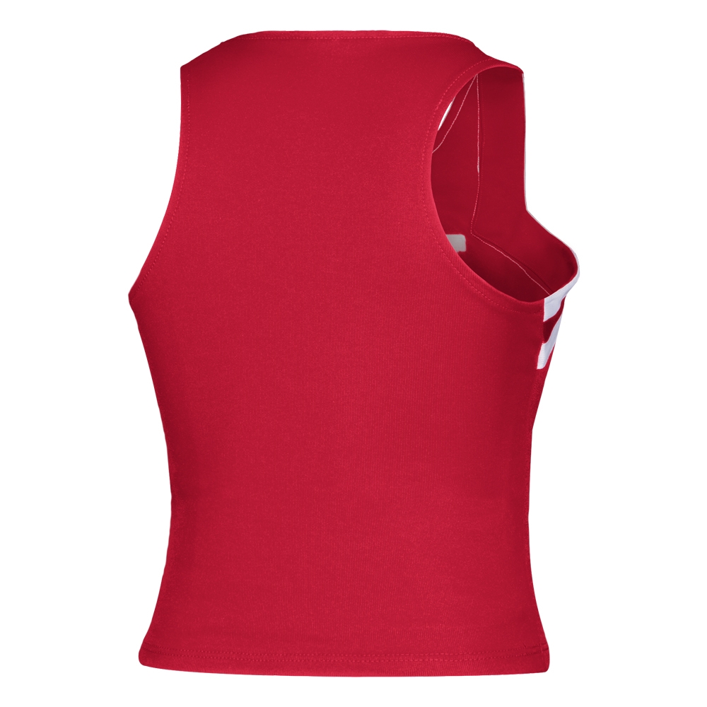 Boost your cheer performance with the adidas Custom Cheer Shell (#802000) and A-line Skirt (#802002). The cheer shell features a sleek V-neck design with a standard solid back and sleeveless arm openings with a point to highlight the bold 2-color tackle twill decoration. Designed for versatility, this shell can be worn alone or layered over a liner or crop top, offering a flexible fit that allows full freedom of movement.