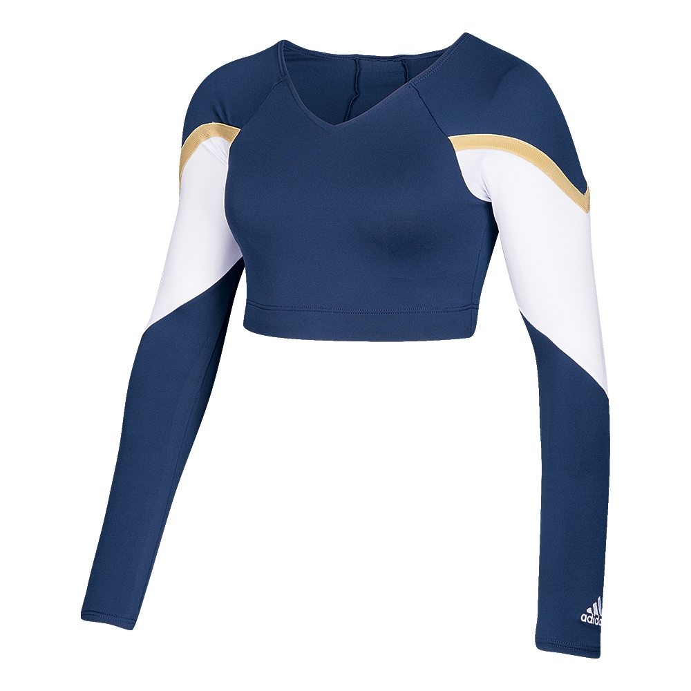 Need extra warmth for those chilly game days? Pair your uniform with the adidas Custom Cheer Liner Top (#802618). This crop-length, long-sleeve liner is made to layer perfectly under your cheer shell, with contrasting arm panels that match the shell for a cohesive look. The v-neck design and adidas’ Dri-Line fabric ensure maximum comfort, breathability, and durability—keeping you cool and confident during high-energy routines.