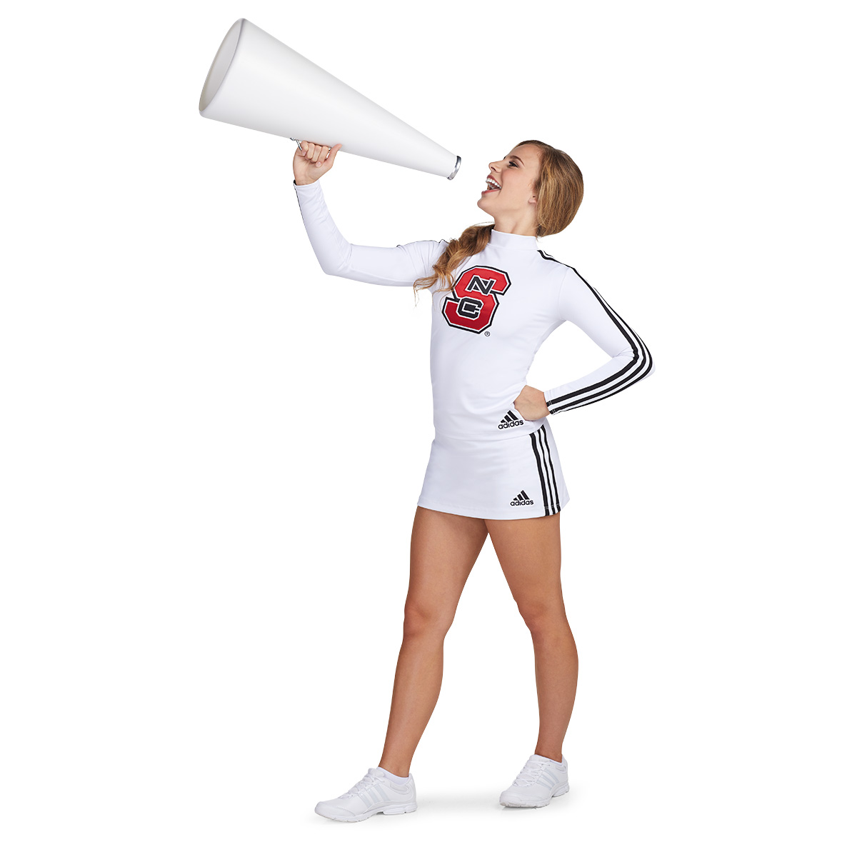 Pair it with the adidas Custom Cheer A-line Skirt (#802007), features a flat elastic waistband, a traditional two-button and zipper closure, and side slits for easy movement. Crafted from Climalite® Stretch Poly fabric, the skirt is flexible, durable, and soft—perfect for cheering with style and ease.