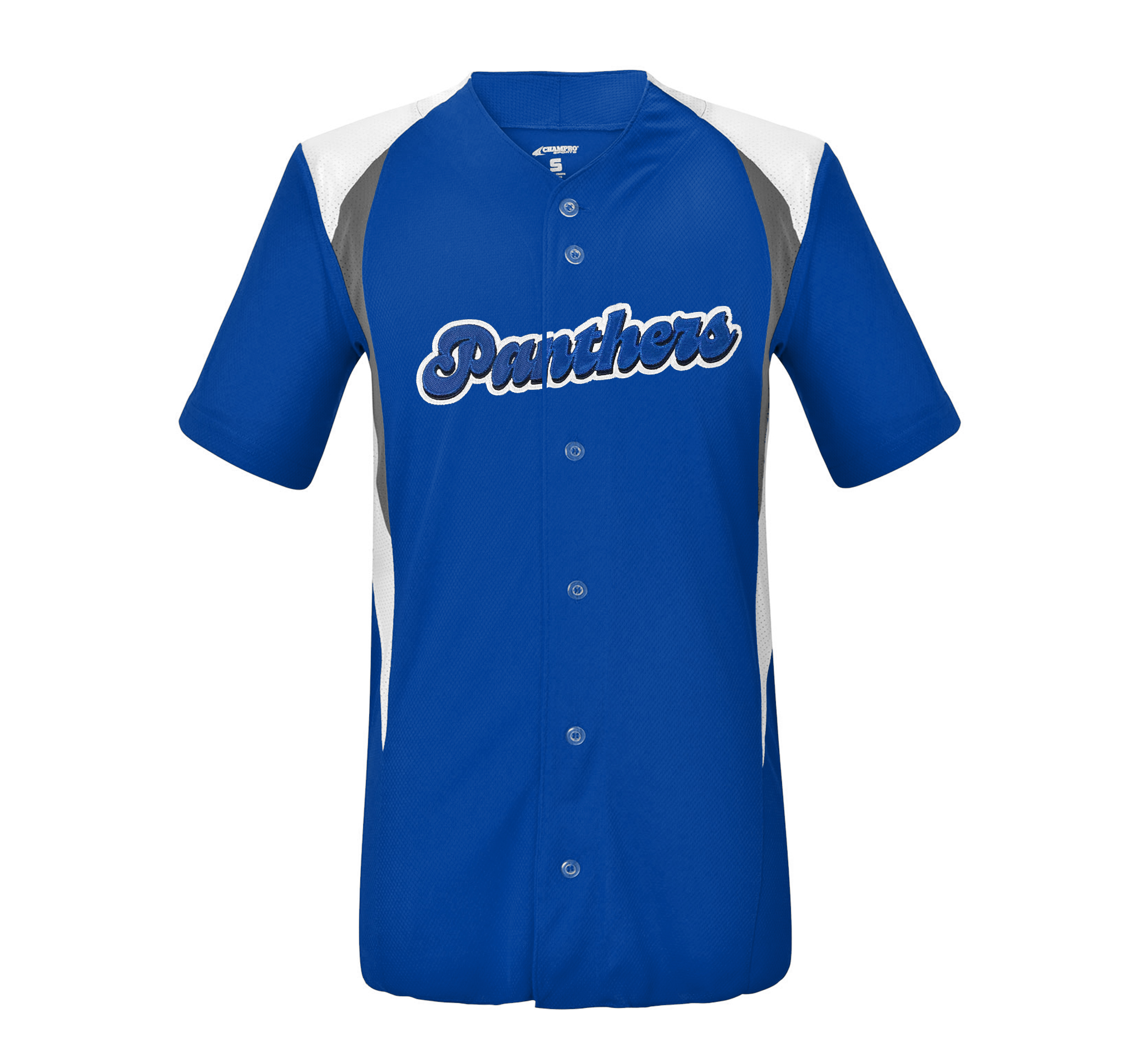 Champro Bull Pen Full Button Jersey – Color: Royal/White/Graphite, Gender: Youth, Size: S