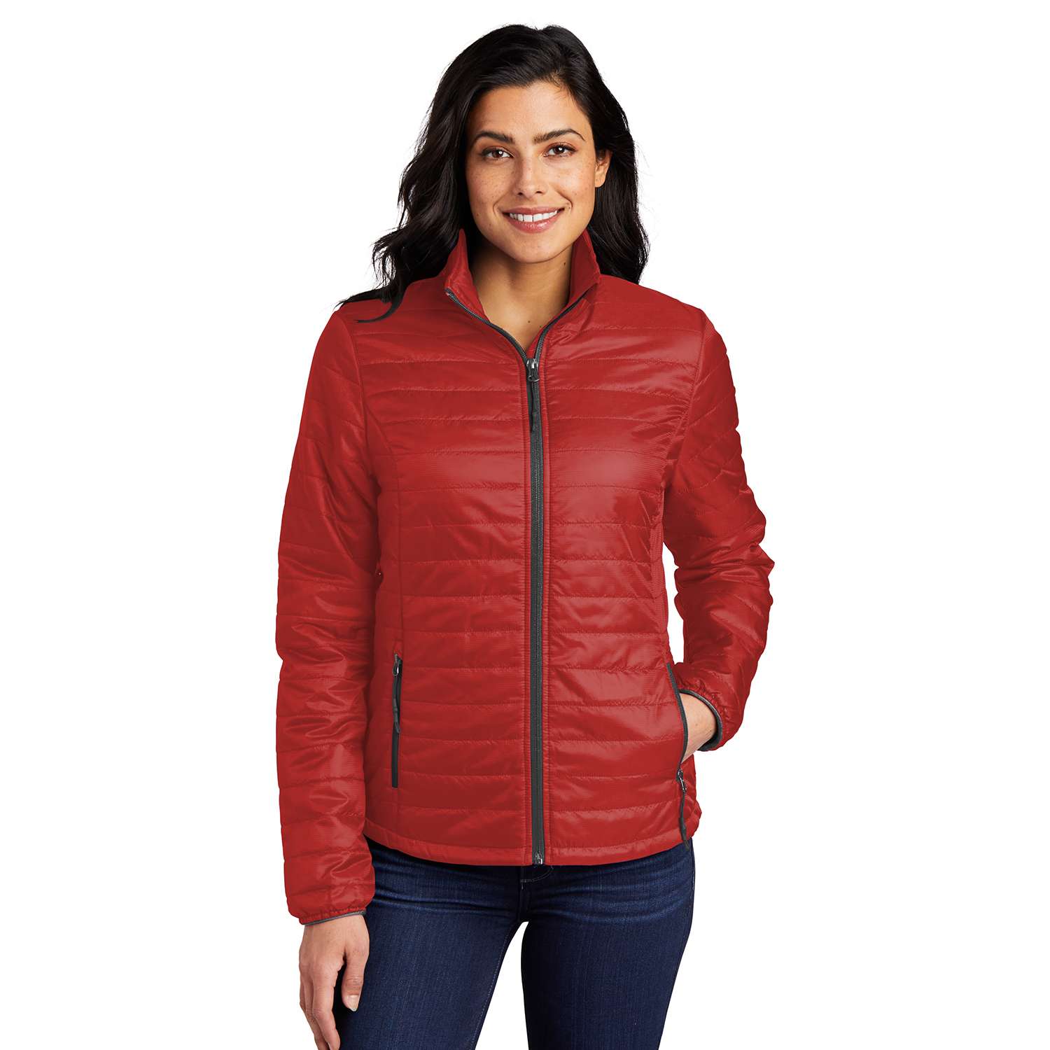 Port Authority Packable Puffy Jacket – Color: Fire Red/Graphite, Gender: Women’s, Size: S