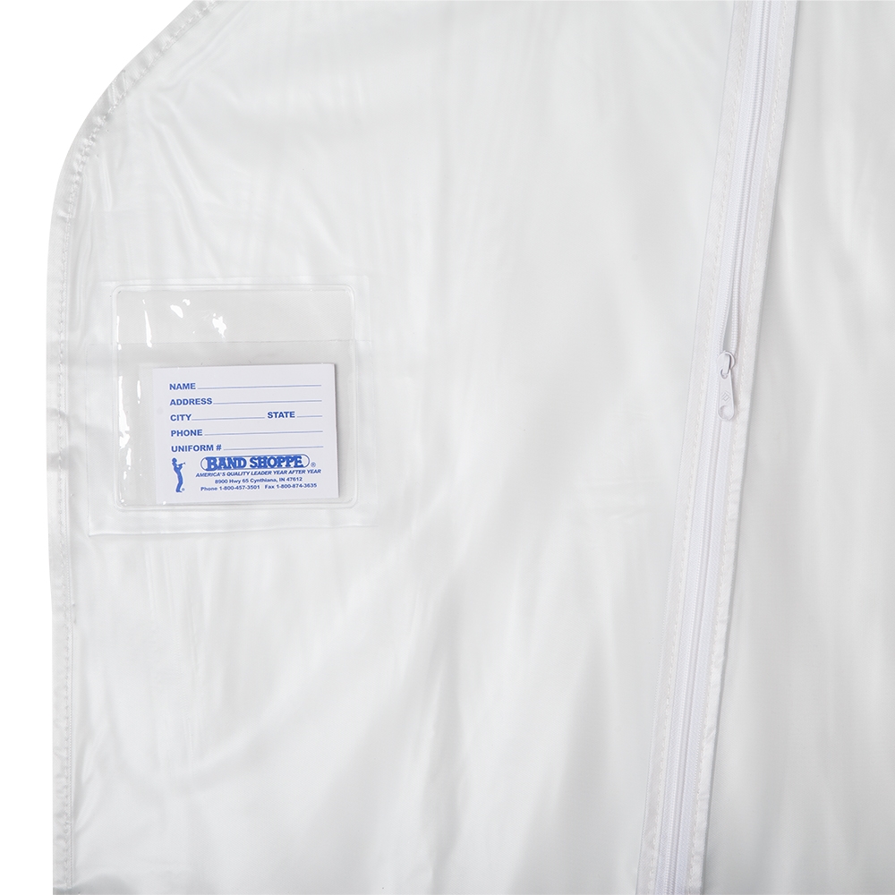 Available in two sizes, these vinyl garment bags offer a simple and affordable way to store and protect your uniforms. The longer 65″ length bag is perfect for larger or longer uniforms, while the short 40″ length bag is easier to carry and stores well on double-tier z-racks. Made from heavy-gauge 8 mil vinyl, these bags are built to last with superior durability compared to standard bags. The water-repellent material ensures your uniforms stay dry and protected from the elements, whether you’re storing them at home or traveling to performances.