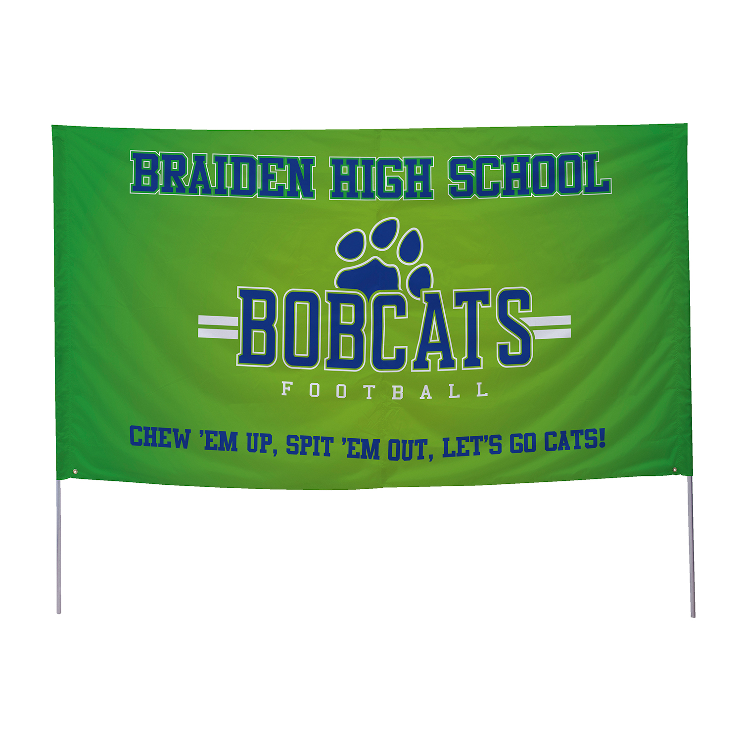 To set up, simply push the poles into the ground and hold the top halves to keep the banner tight for a smooth tear-away experience. Available in fully customizable designs, these banners can feature your team name, logo, or slogan to add a personalized touch to your game day experience. Made for lasting use, they’re perfect for football, basketball, and any other sport, season after season.