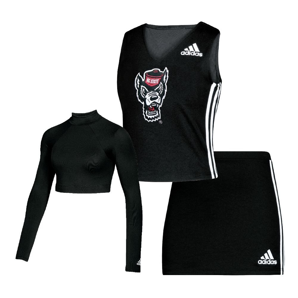 Lead your team to victory with the adidas Custom Cheer Shell (#802005) and Cheer Skirt (#802604)! The cheer shell features a sleek sleeveless design, a comfortable v-neck, and classic adidas striping on the sides for a bold, athletic look. Pair it with the cheer skirt, which offers a flat elastic waistband, traditional two-button and zipper closure, and side slits that allow for effortless movement. Both pieces are crafted from flexible, durable, and soft Climalite® Stretch Poly fabric, giving you the freedom to move with ease while looking stylish.