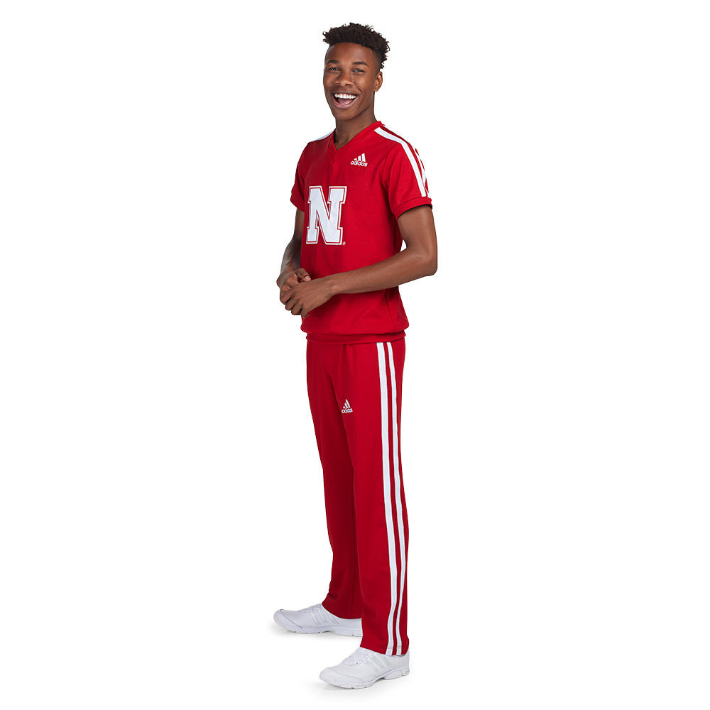 Elevate your performance with the adidas Men’s Custom Cheer Top (#802603) and Cheer Pants (#802604). The cheer top features short cuffed sleeves, a comfortable v-neck, and a fitted waistband for a sleek, athletic look. Paired with custom-designed men’s cheer pants that include a covered elastic waistband and interior drawstring, this uniform ensures a secure and adjustable fit. Both pieces are crafted from Climalite® Stretch Poly fabric, offering flexibility, durability, and softness, making this set perfect for high-energy routines and long-lasting wear!