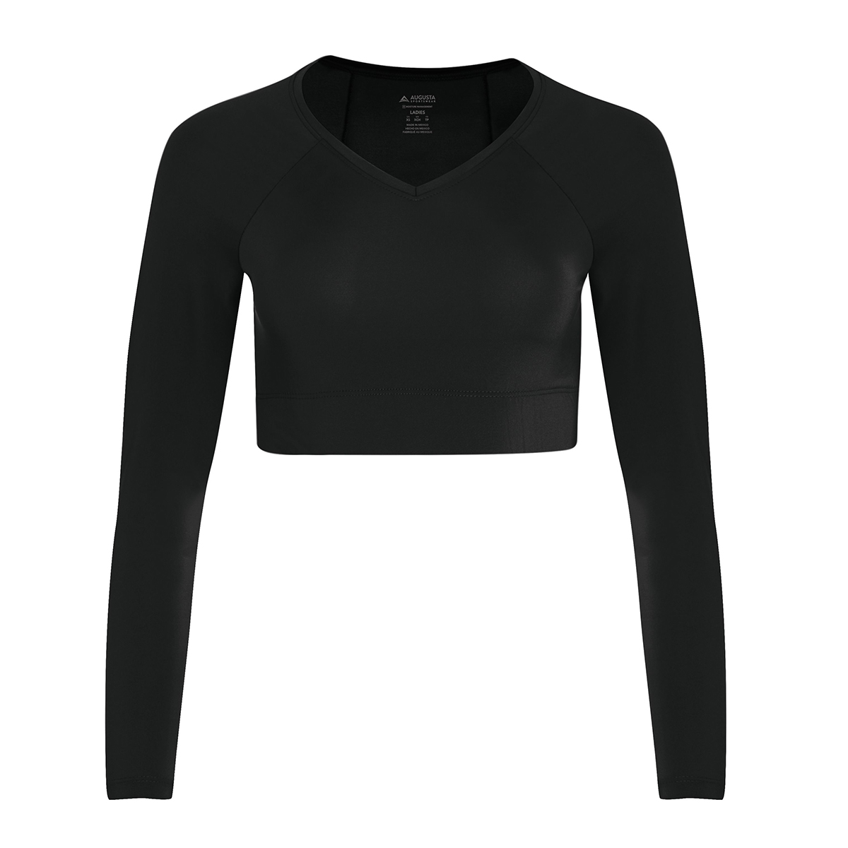Augusta V-Neck Crop Top – Color: Black, Size: L