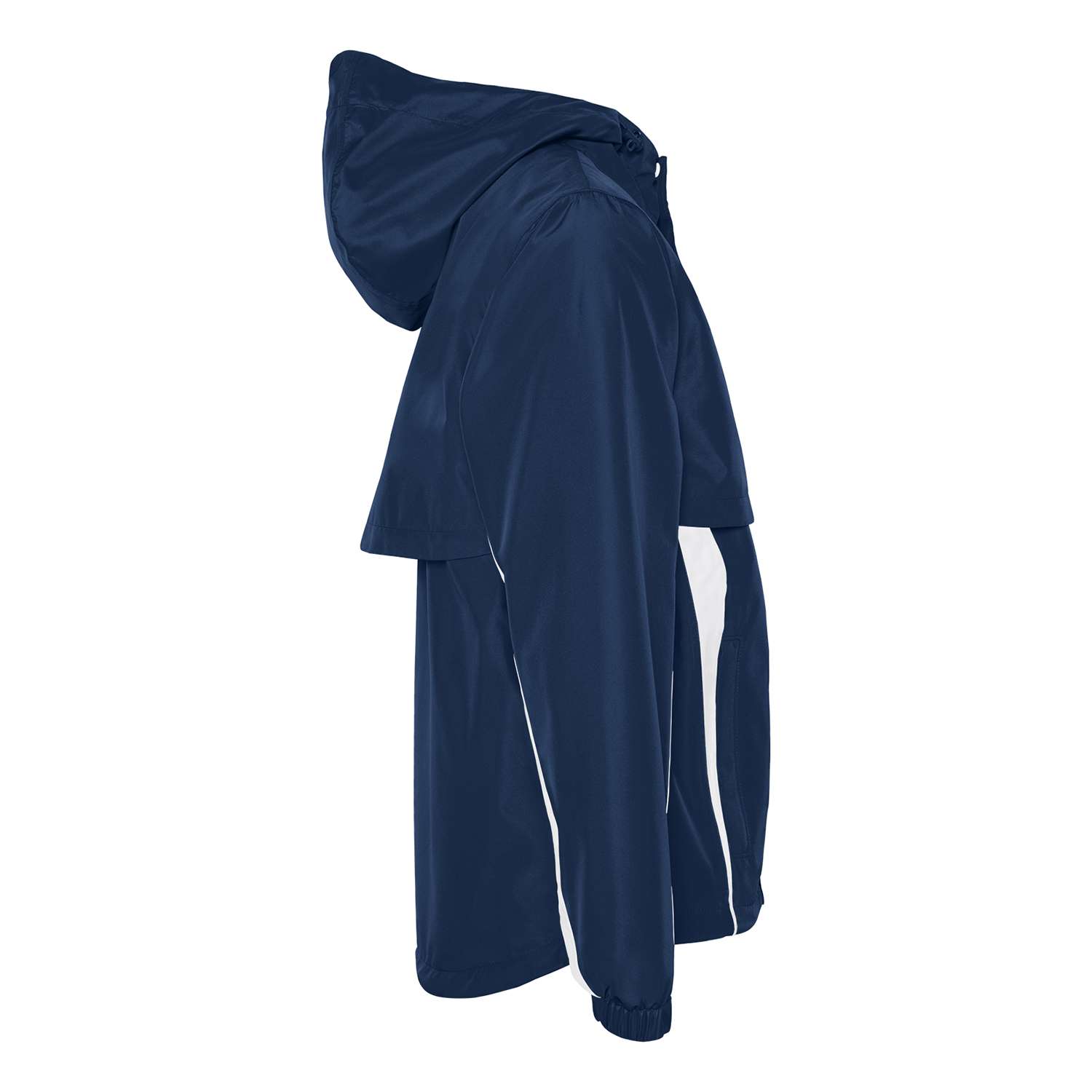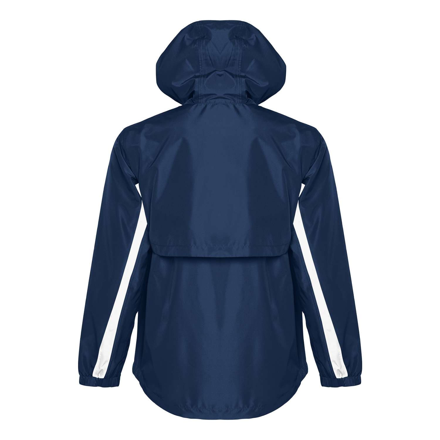 For added style and visibility, the jacket includes contrasting white insets on the bodice and sleeves, creating a bold, polished look that stands out on the field. The storm flap with snap covering zipper ensures that no water gets through, while the drop tail design offers additional comfort and coverage, making this jacket an essential part of your cheerleading gear. Add a custom decoration to this jacket and show off your team spirit!