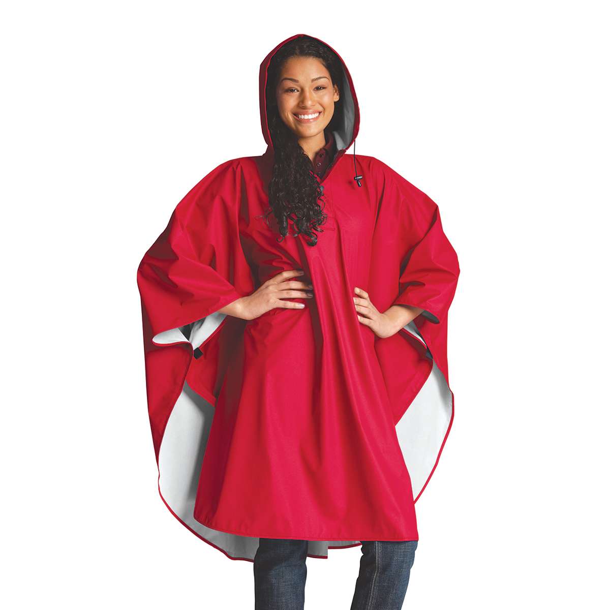 Stay dry and ready to perform in any weather with the Charles River Pacific Poncho! Great for game day or parades, this high-quality poncho is crafted from waterproof New Englander polyurethane, ensuring you stay comfortable and protected. Its durable design features plastic bonded to a knit backing, giving you extra insulation and long-lasting wear. With heat-sealed seams, an adjustable drawstring hood, and a snap placket at the neck, this poncho keeps you shielded from wind and rain. Unlike disposable ponchos, the Pacific Poncho is eco-friendly and reusable, making it a perfect addition to any cheer coach’s bag of tricks. Plus, it comes with a matching travel pouch for easy storage on the go! Whether you’re at a game, practice, or performance, this poncho ensures you stay focused and dry.