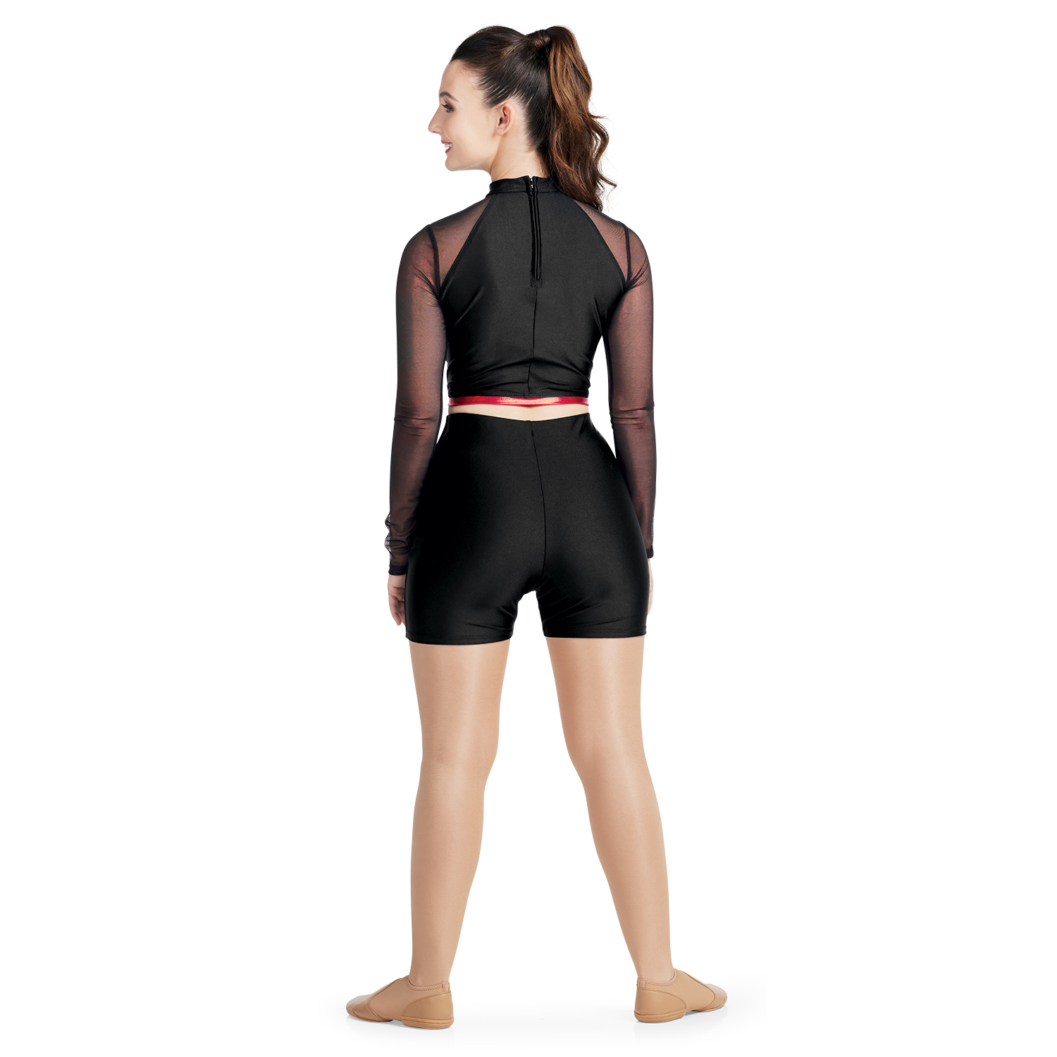Long Sleeve Open Bodice Crop Top with a Mock Neck Collar and Rhinestones, Zippered Back Entry