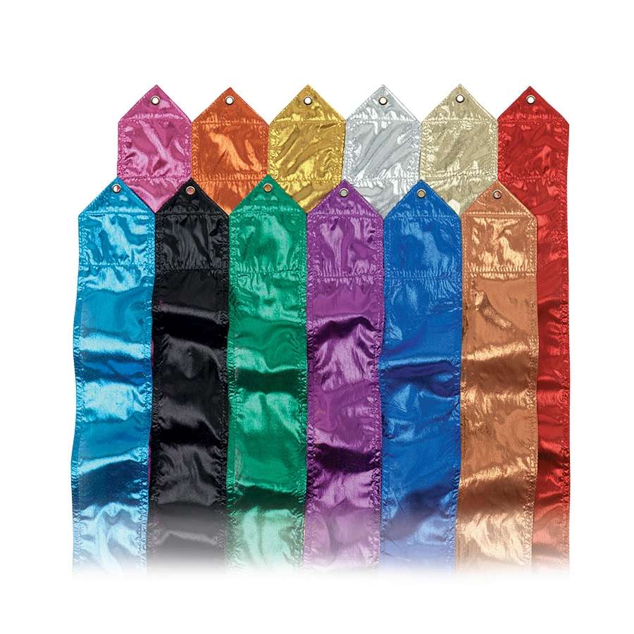 Add vibrant energy to your dance routines with the Lamé Action Ribbons! These shimmering, handcrafted ribbons are perfect for making your performances stand out. Made with genuine tissue Lamé, they bring a sleek, sparkling flow to every move. The ribbons measure 12 feet long and 3½ inches wide, giving you plenty of room to show off your skills. With professional double-felled stitching, they’re designed for durability through every leap, twirl, and spin. These versatile ribbons easily attach to an Action Rod or Ultralite Flag Pole (sold separately), making them great for a variety of performances, including rhythmic dance, color guard, gymnastics, and more. You can even customize them in different Lamé colors to match your style!
