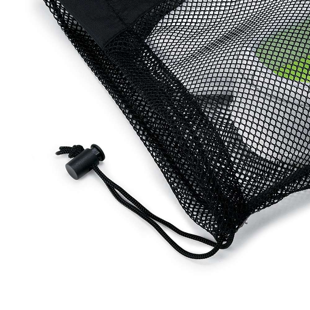 Transport your cheer and dance shoes with ease using in this durable mesh shoe bag. Made from a poly open weave mesh, this lightweight bag is designed with excellent ventilation, helping to prevent moisture buildup and allowing your shoes and accessories to air out and dry after long rehearsals or performances. The cinch drawstring closure with a toggle keeps your items secure during transport, ensuring nothing falls out. The drawstring can easily loop over hangers, allowing you to keep your shoes and uniform together in one place for added convenience. Measuring 14″ × 17¾”, this mesh bag is the perfect size for shoes, makeup kits, and other small accessories.