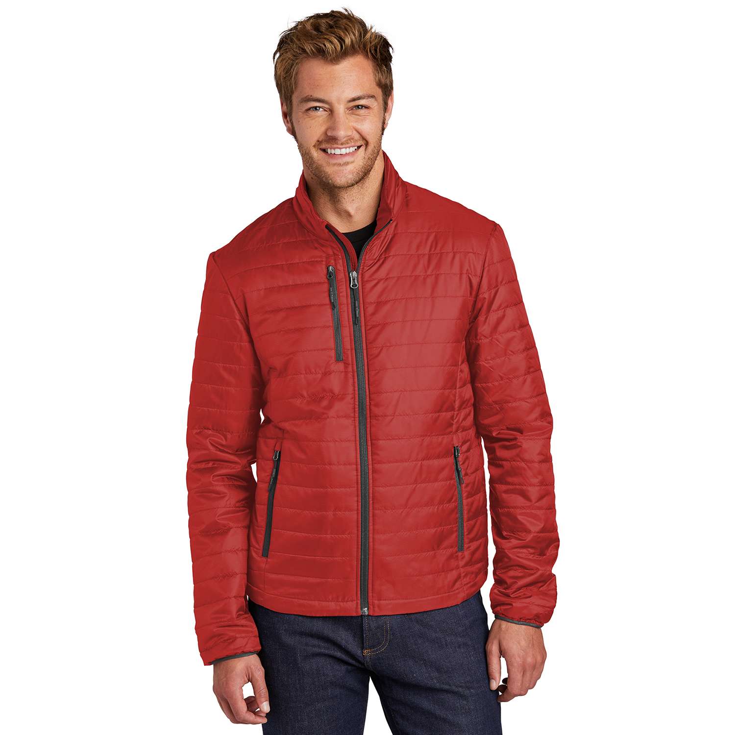 Port Authority Packable Puffy Jacket – Color: Fire Red/Graphite, Gender: Men’s, Size: L