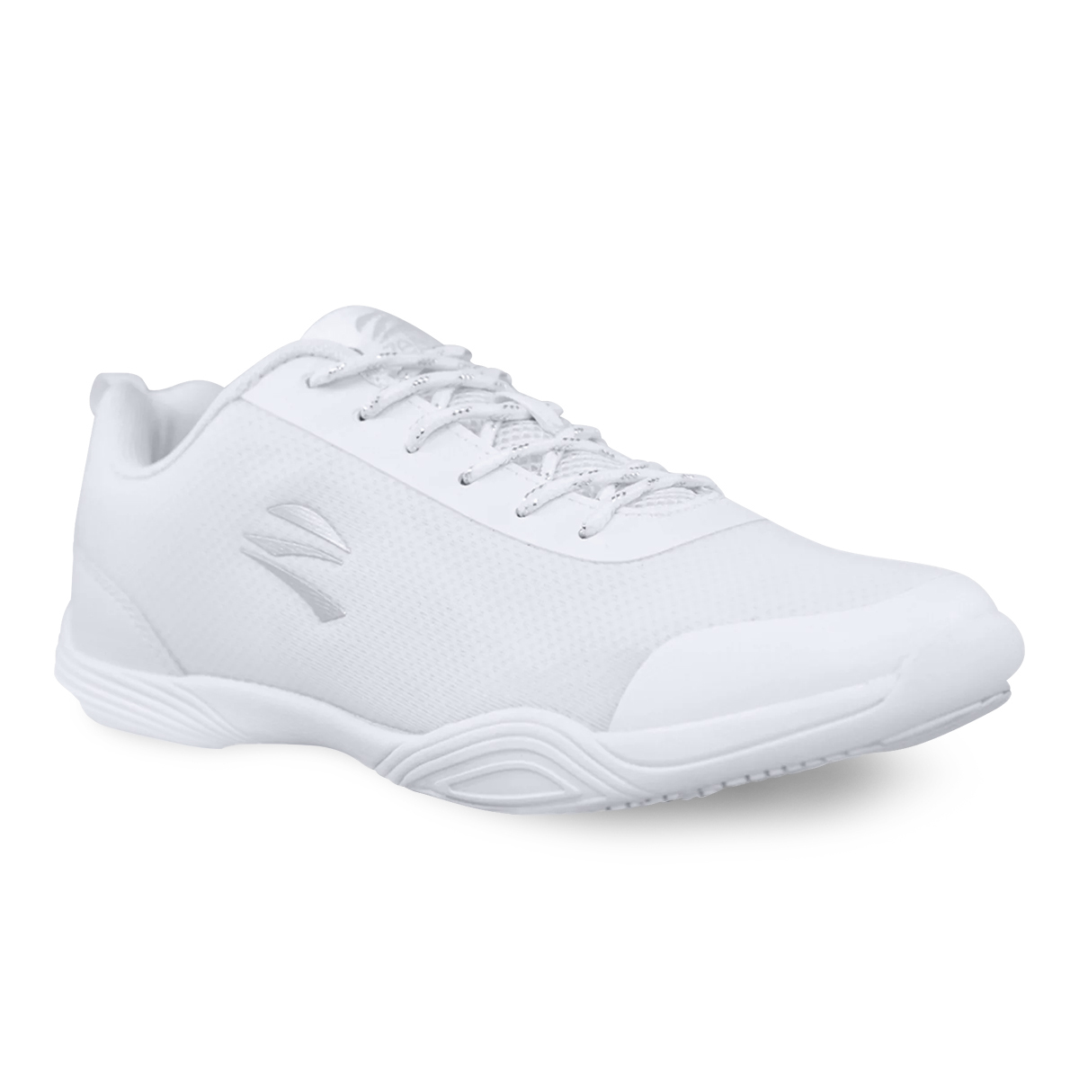 Zephz’s lightest shoe yet, at only 4.7 ounces – ideal for stunting! With a sleek, low-profile design and a lightweight nylon mesh upper, the Zephz Lightning v2 Cheerleading Shoe features turbo-dry linings to keep you comfortable for those long double-overtime games. The molded EVA foam sole has rubber landing areas, and a molded thermoplastic heel counter provides excellent heel stability. Smoothly rounded edge provides a comfortable grip all around the shoe while stunting – no sharp edges that hurt hands. Stitched toe and heel provide extra durability without restricting mobility for tumbling. Includes a silver sparkle shoe bag in the box. Available in Women’s and Youth sizes.